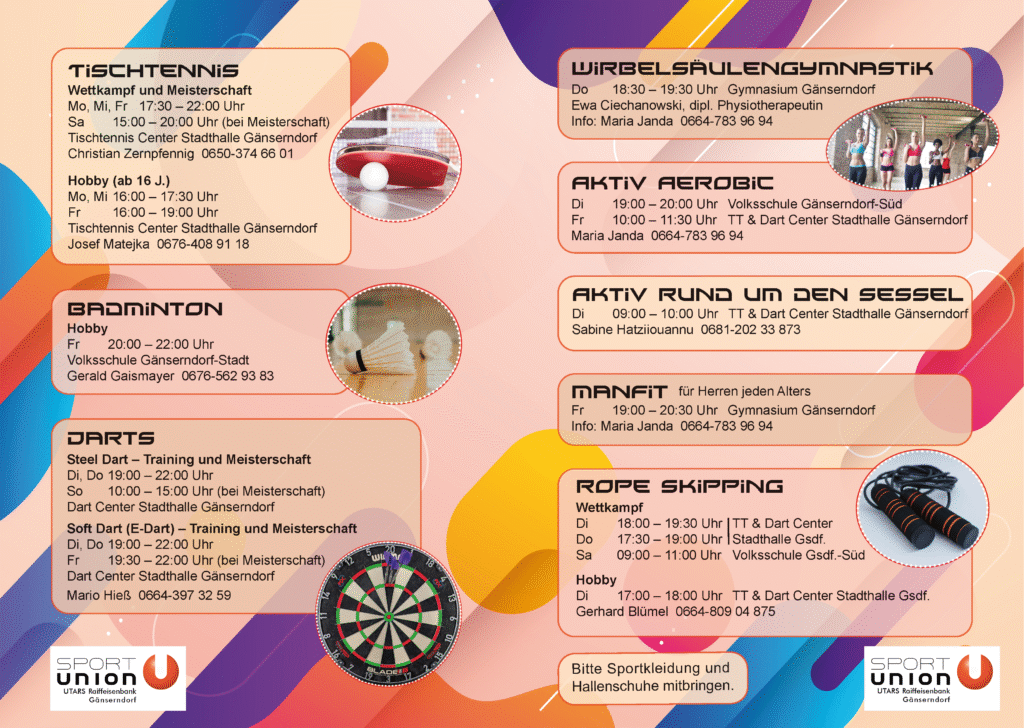 Am 08. September 2025 startet UTARS mit sämtlichen Sektionen in die neue Saison 2025/26. Das aktuelle Sportprogramm zeigt das mittlerweile umfassende Angebot. In diesem Sinne viel Erfolg und alles Gute.